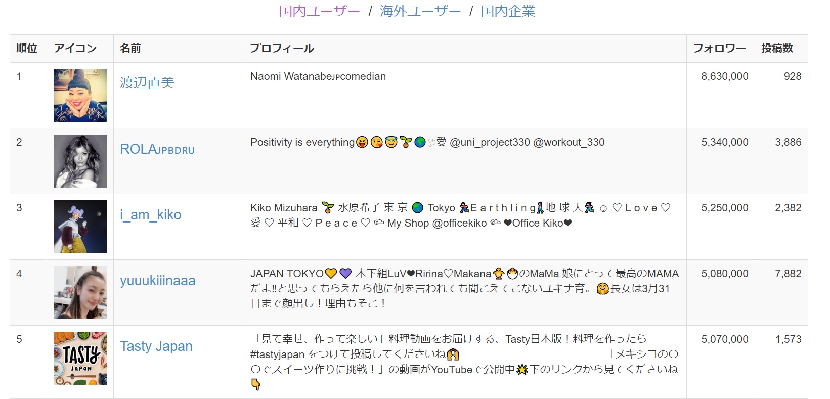 以下整理了日本國內在youtube及IG的前五名網紅給大家參考~