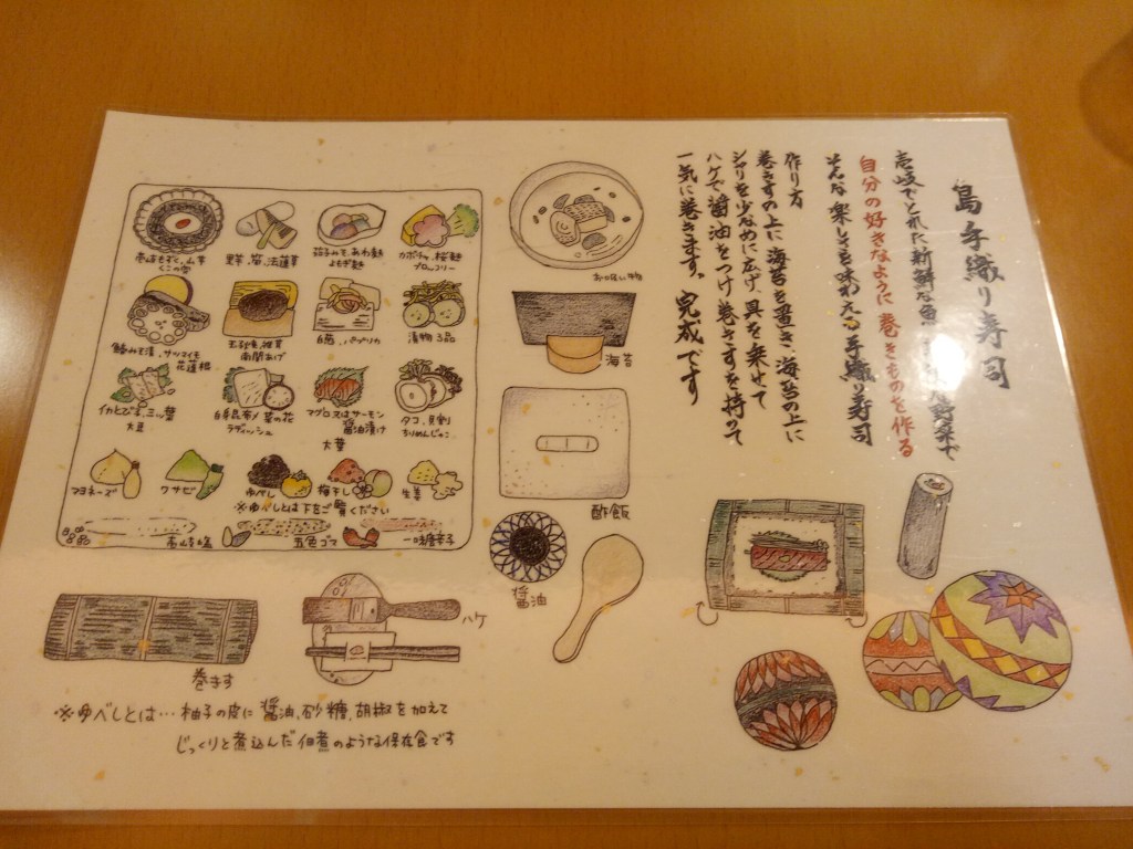 島手織壽司使用了壱岐周邊捕獲的新鮮魚類及島上的蔬菜,依自己的喜好來DIY的手捲壽司。
